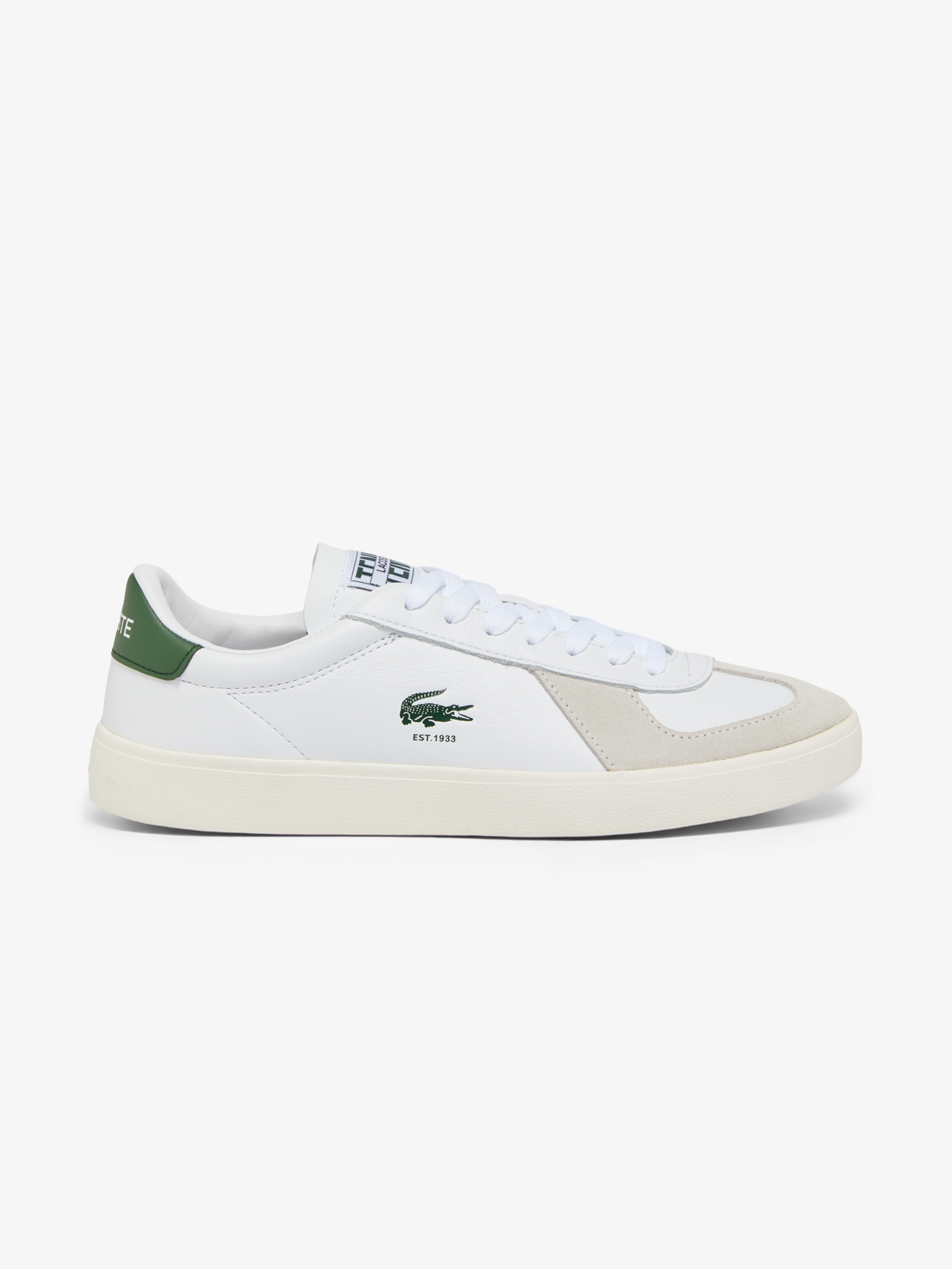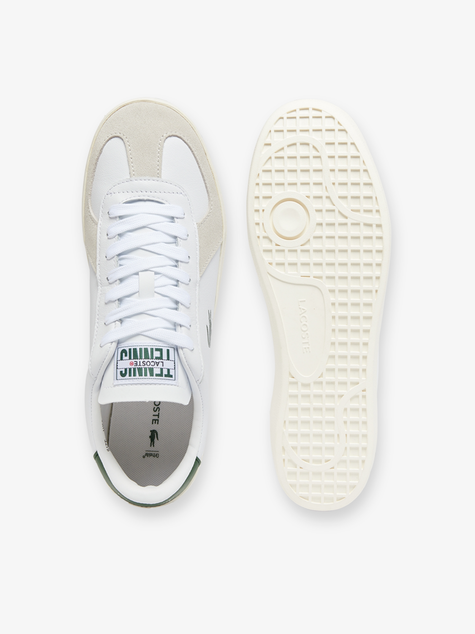 The Baseshot Pro by Lacoste features pure, clean lines, a premium leather upper, and elegant retro accents including a central debossed crocodile.
