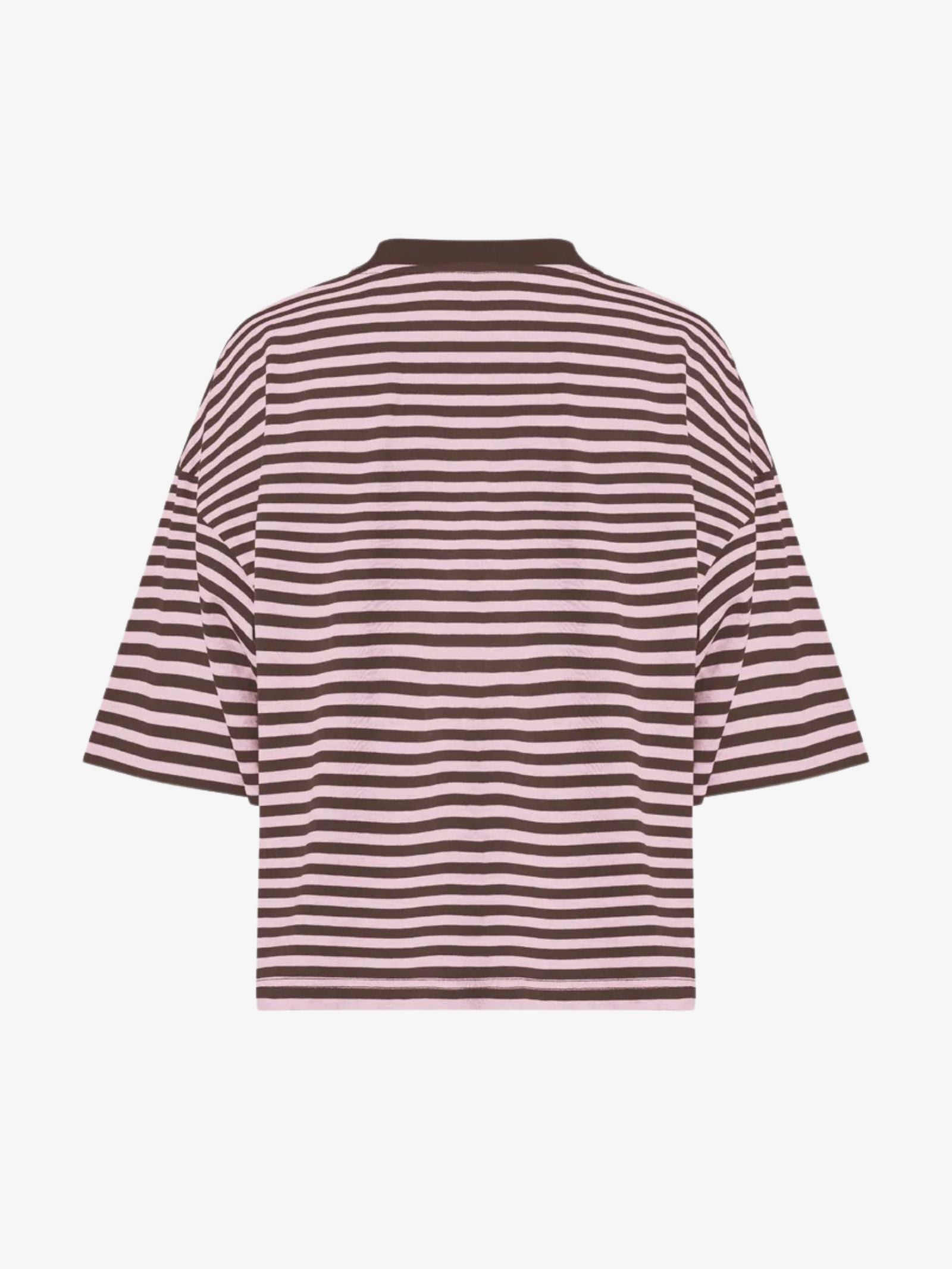 This Bloom Short Sleeve from Lioness is cut with a boxy, oversized fit. It features a crew neckline, short sleeves, and an all-over stripe pattern.