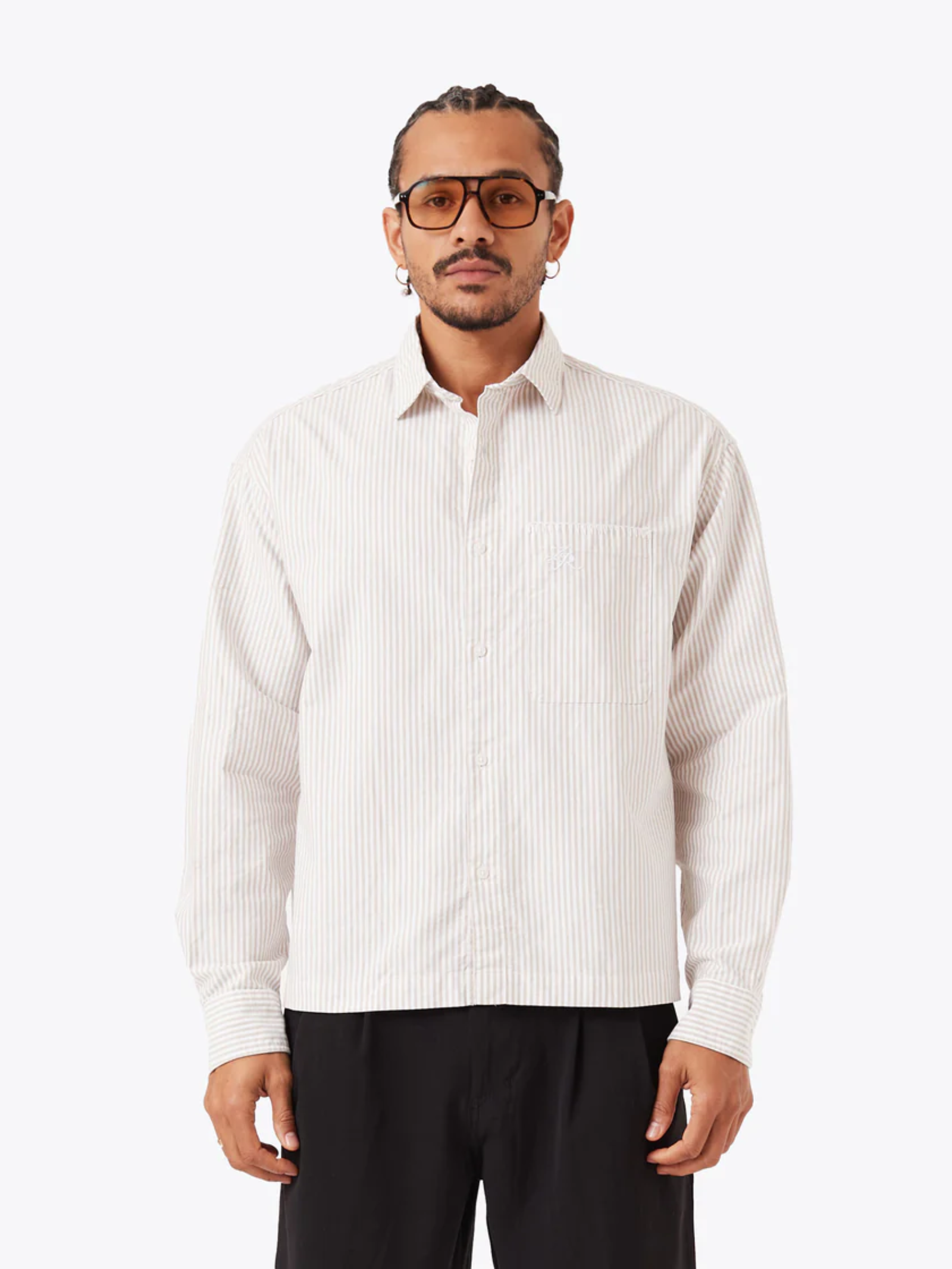 Designed with a wide, cropped silhouette, this Box Crop Ls Shirt by Zanerobe includes a chest patch pocket featuring signature stitching and emblem logo. The cotton oxford fabric delivers both texture and durability.