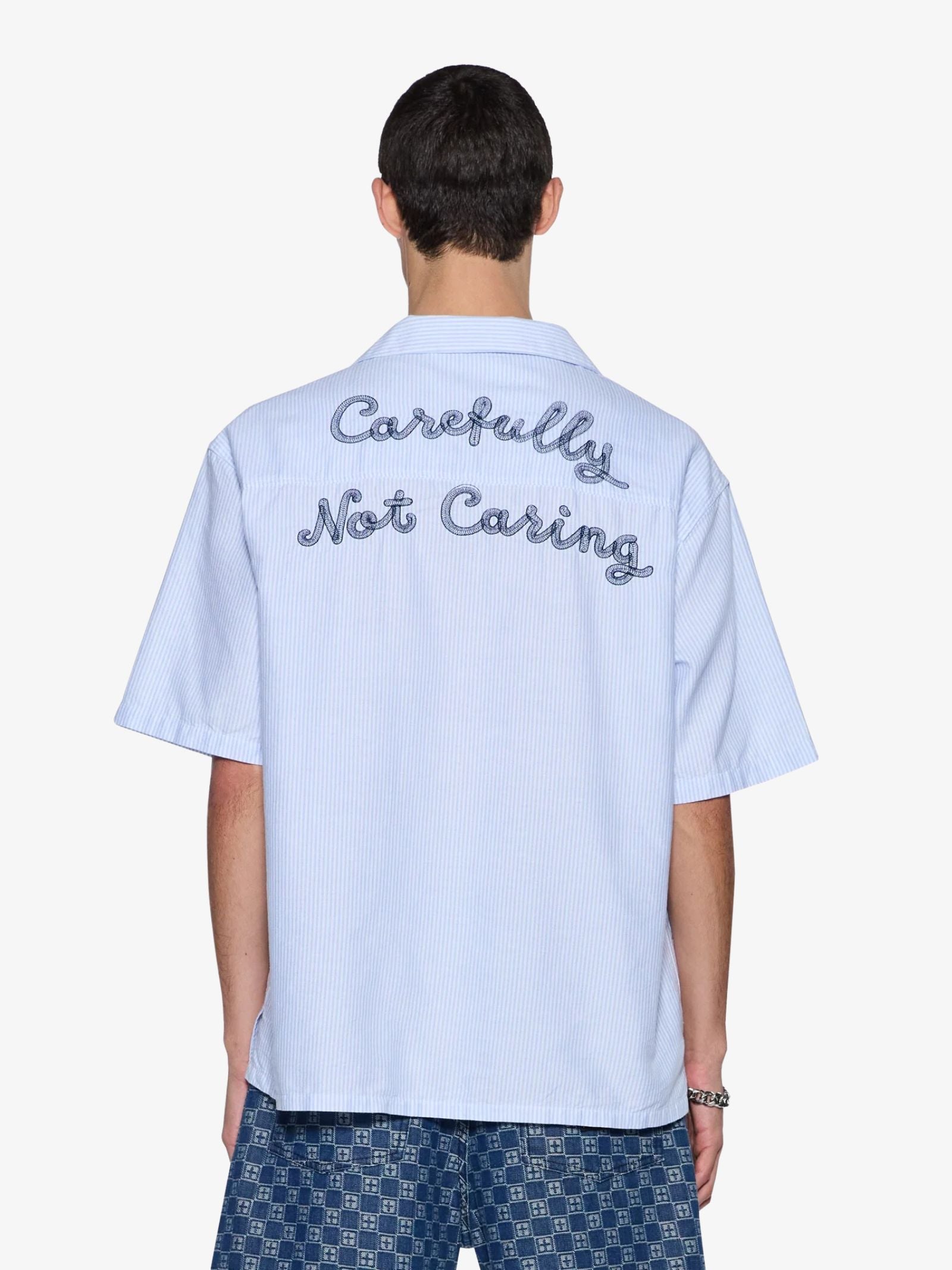Oversized short-sleeve shirt with a Cuban collar and button placket, the Caring Diner Short Sleeve Shirt from Ksubi shirt features 4x4 cross embroidery and T-box branding. Its relaxed fit and clean lines make it a standout casual piece.