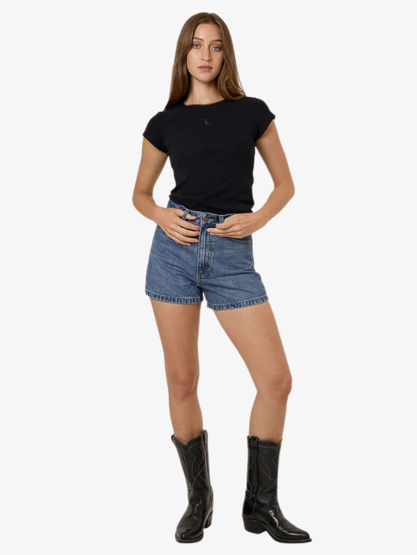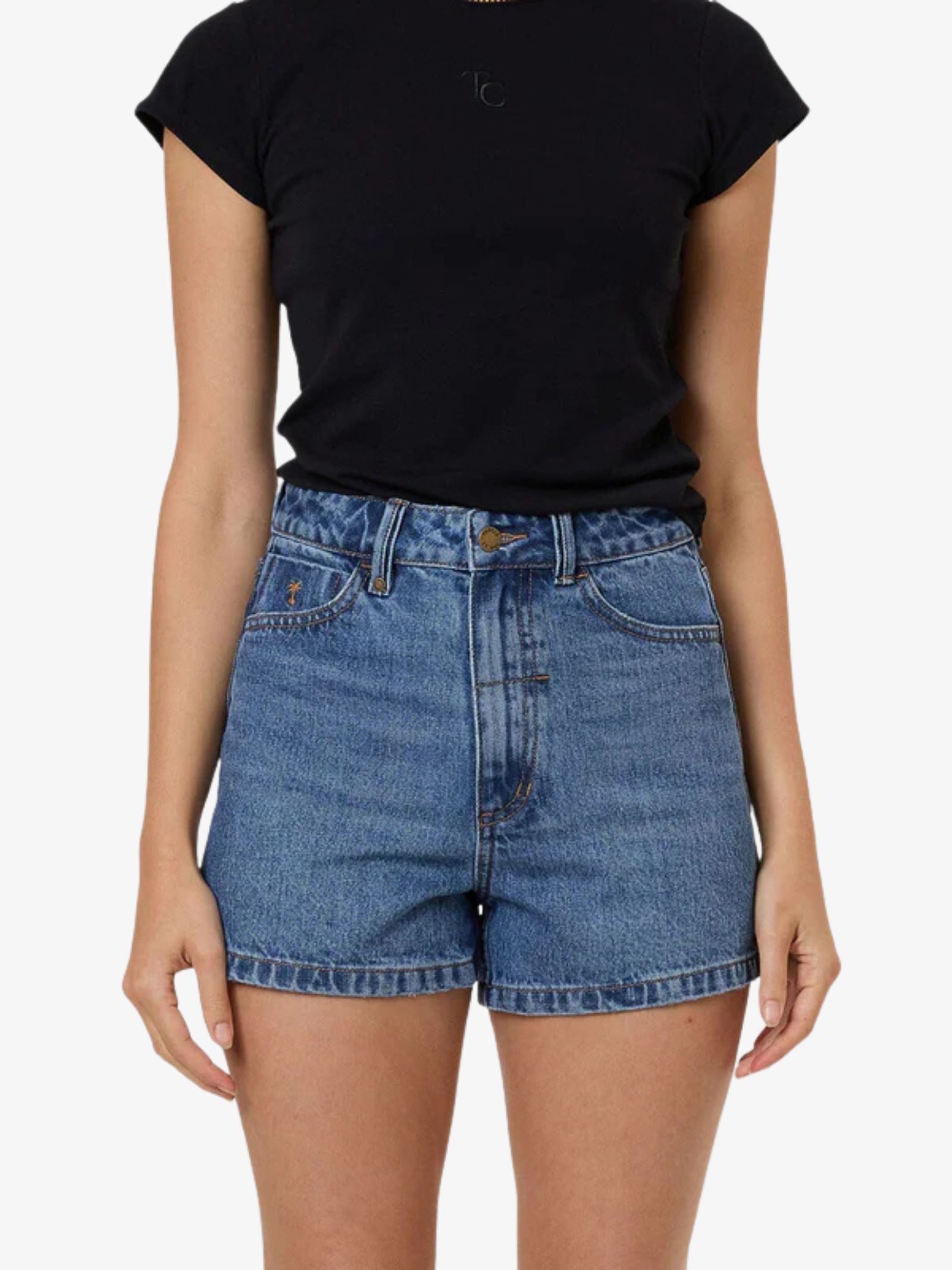The Erica Short by Thrills is made from a sturdy cotton denim blend with a high-rise cut and vintage-inspired wash. Designed with 5-pocket styling and a clean finish, these shorts bring effortless versatility to everyday wear.