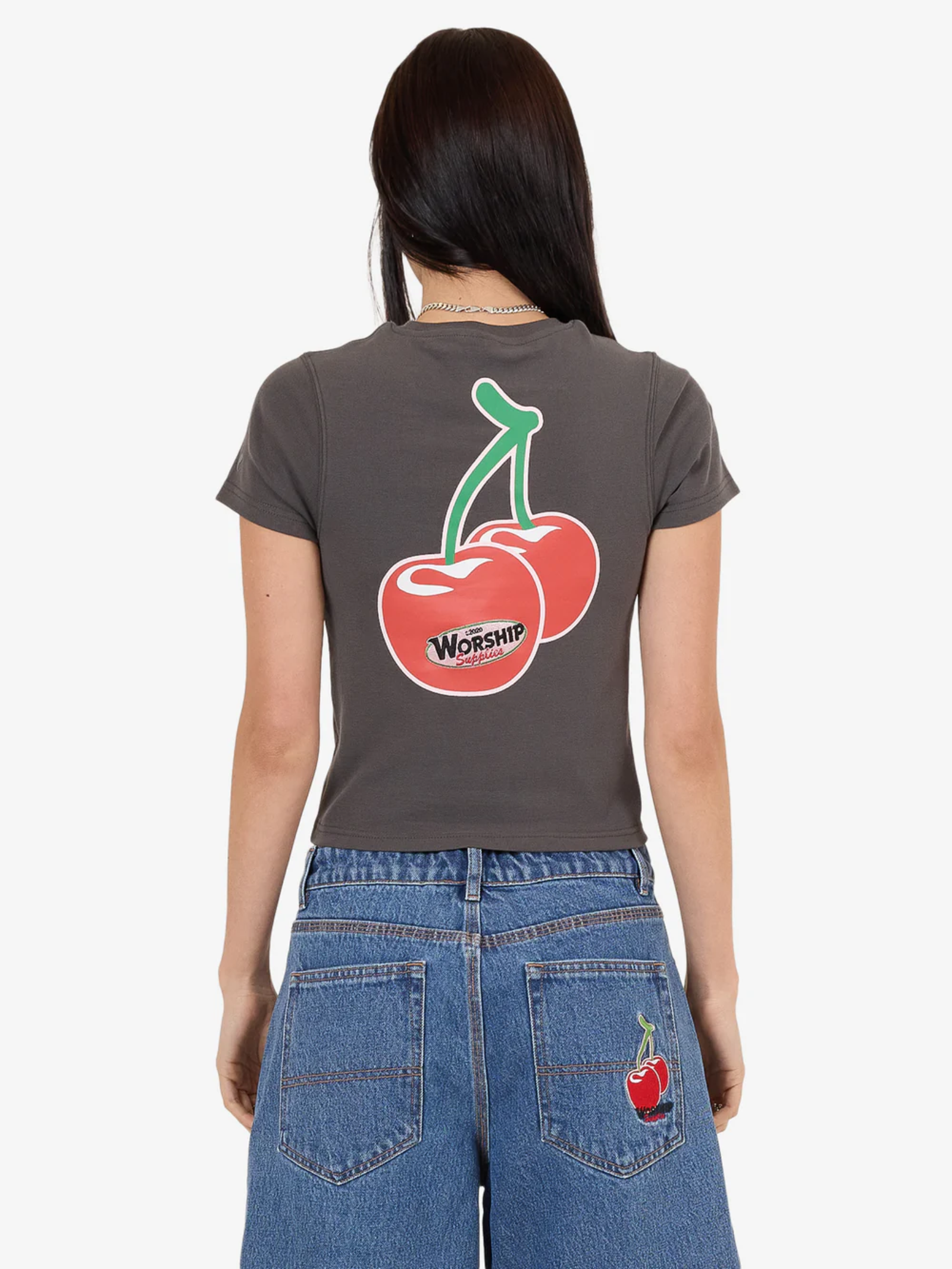 The Glazed and Confused Slim Fit Tee by Worship is cut from soft fine rib cotton with stretch for a close fit. Washed in vintage black for a lived-in, grunge-ready edge, this tee nails streetwear style when paired with low-rise denim or oversized cargos.