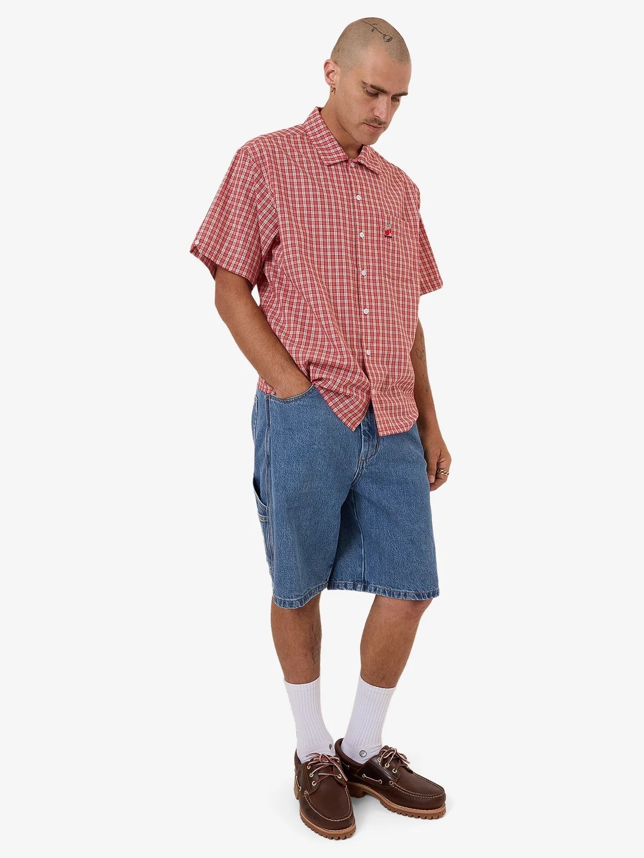 Serve effortless street style in the Glazed And Confused Shirt by Worship. Designed with a yarn-dye check and structured poly-cotton blend, it features a boxy fit and embroidered chest hit for understated edge.