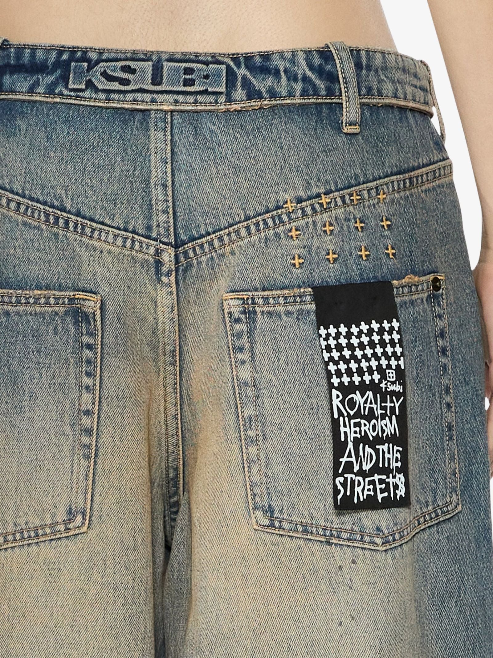 The Ksuper Dune Jean by Ksubi is cut in the brand’s baggiest fit with a super low rise and full length. Made from premium indigo denim with a tinted wash, it features contrast fading, oil blotches, and a flipped waistband embossed with Ksubi branding.