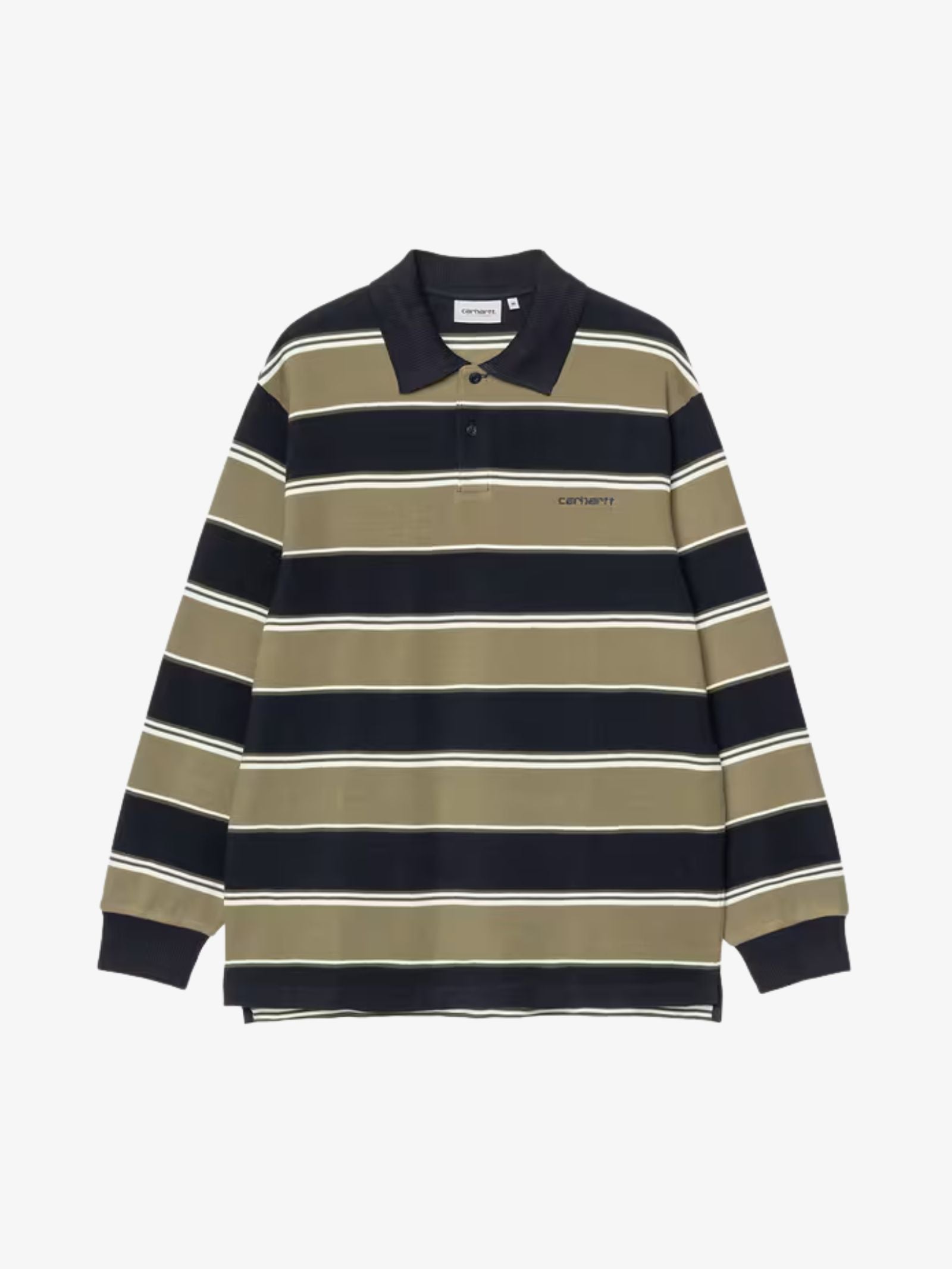 The L/S Malone Rugby Shirt from Carhartt Wip is cut from heavyweight textured cotton waffle with a loose fit. It features a flatknit collar, a buttoned placket, ribbed cuffs, and an embroidered Script Logo at the chest.
