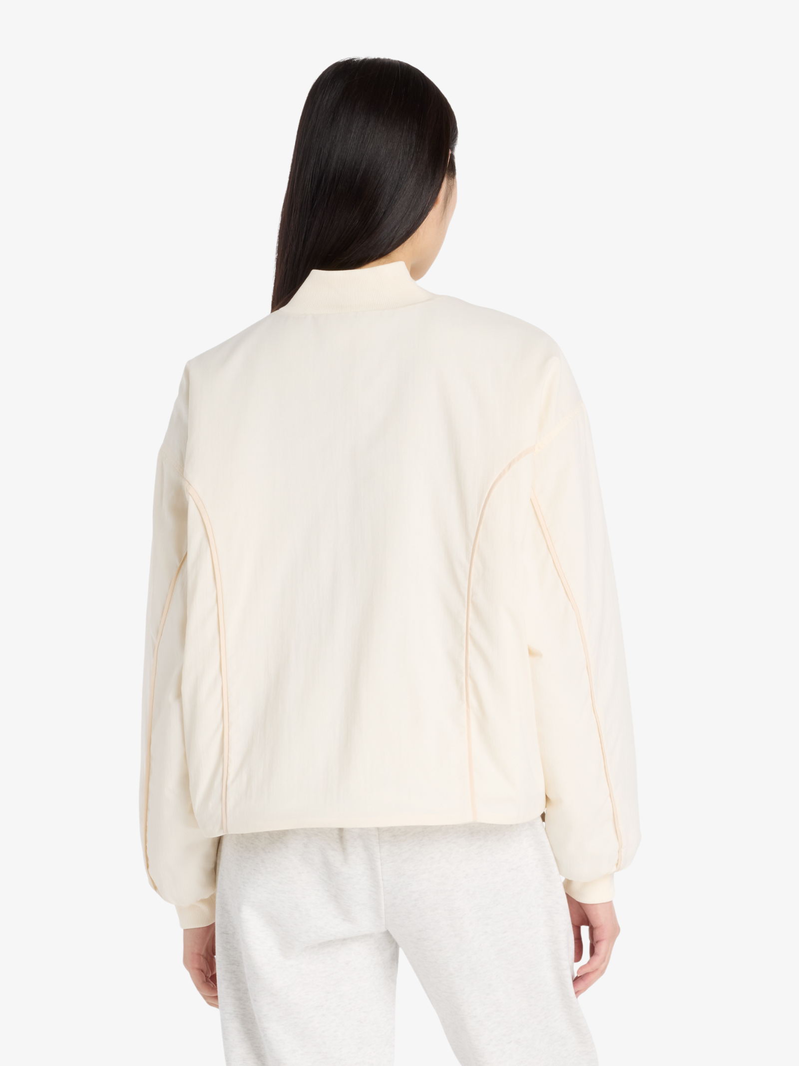 The Linear Heritage Woven Bomber Jacket in Permafrost by New Balance is deigned with a smooth woven finish and a relaxed fit. This jacket features ribbed trims and a full-zip closure.