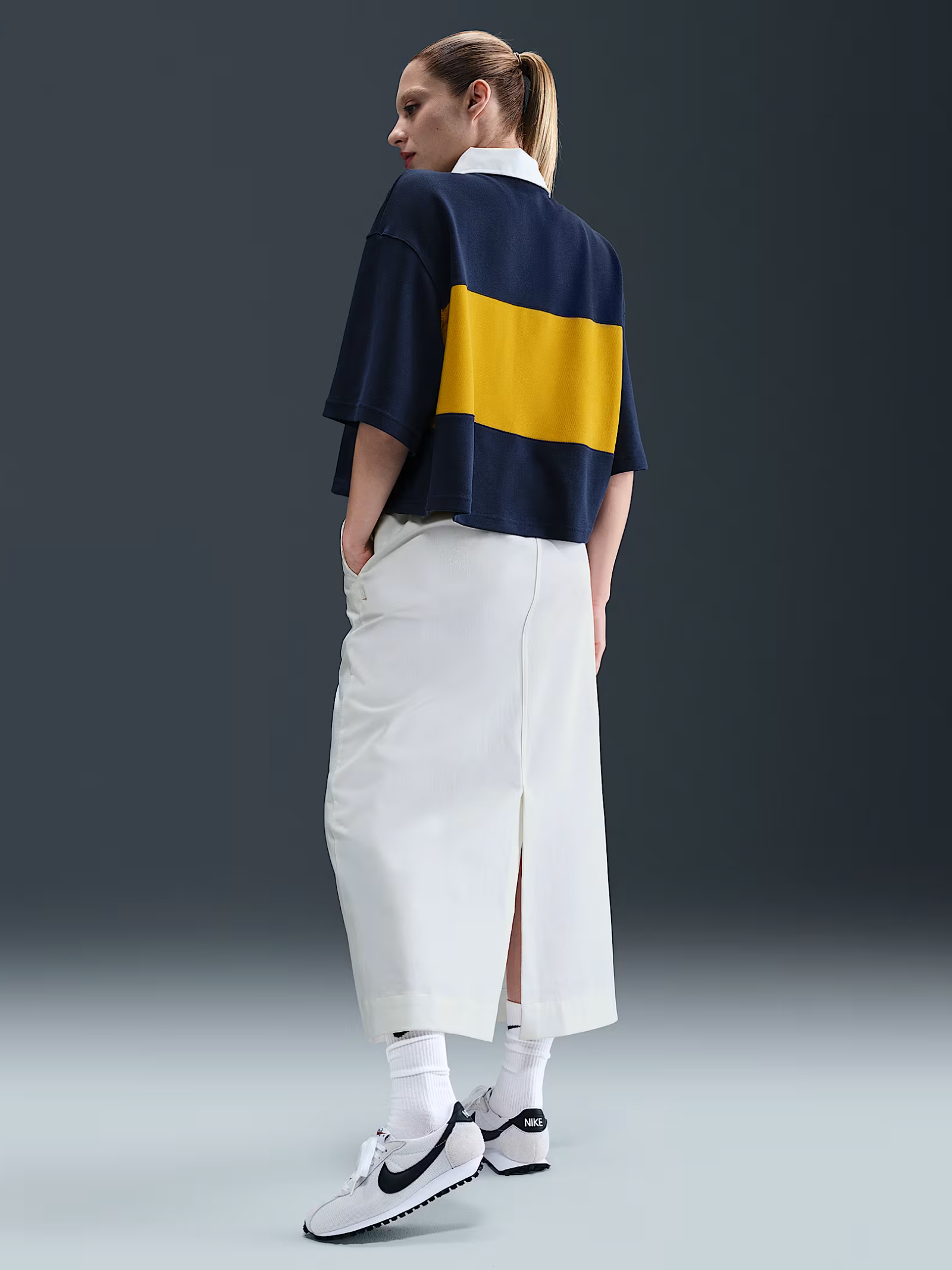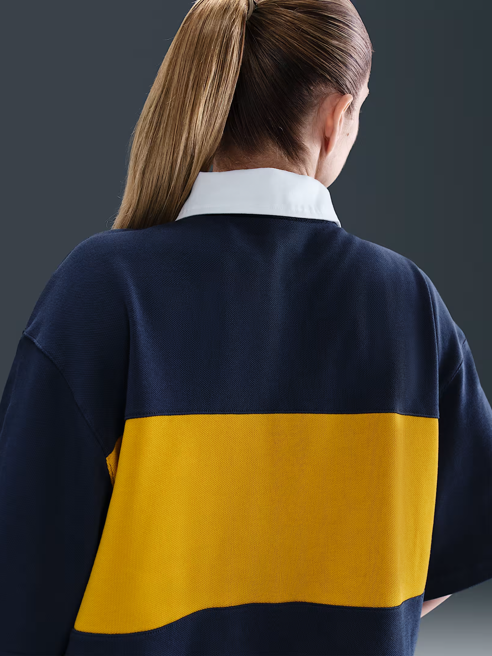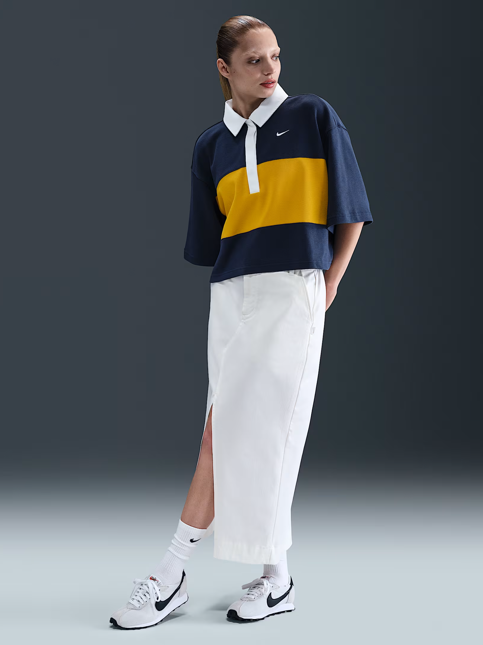 The Nike Sportswear Women's Oversized Short-Sleeve Polo Top features hidden press studs on the placket and a cropped length for a modern look. The embroidered Swoosh logo adds a signature touch, while the oversized fit ensures a relaxed, spacious feel.