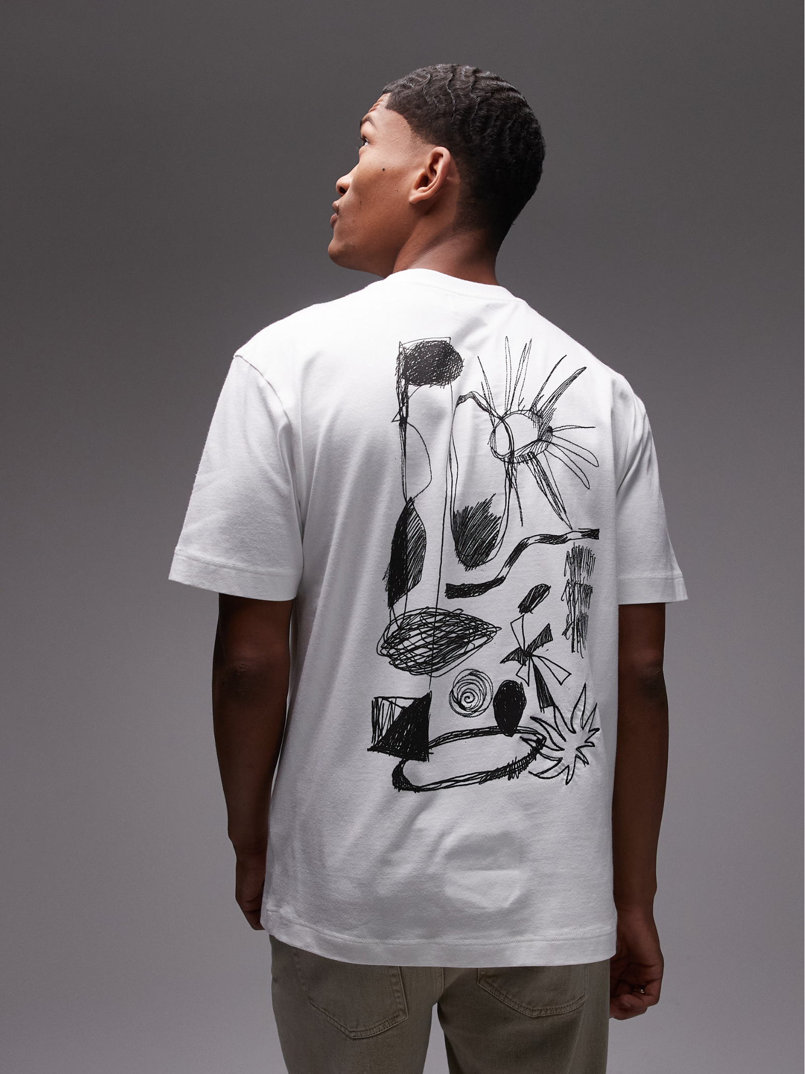 Oversized Abstract Scribble Applique Shirt