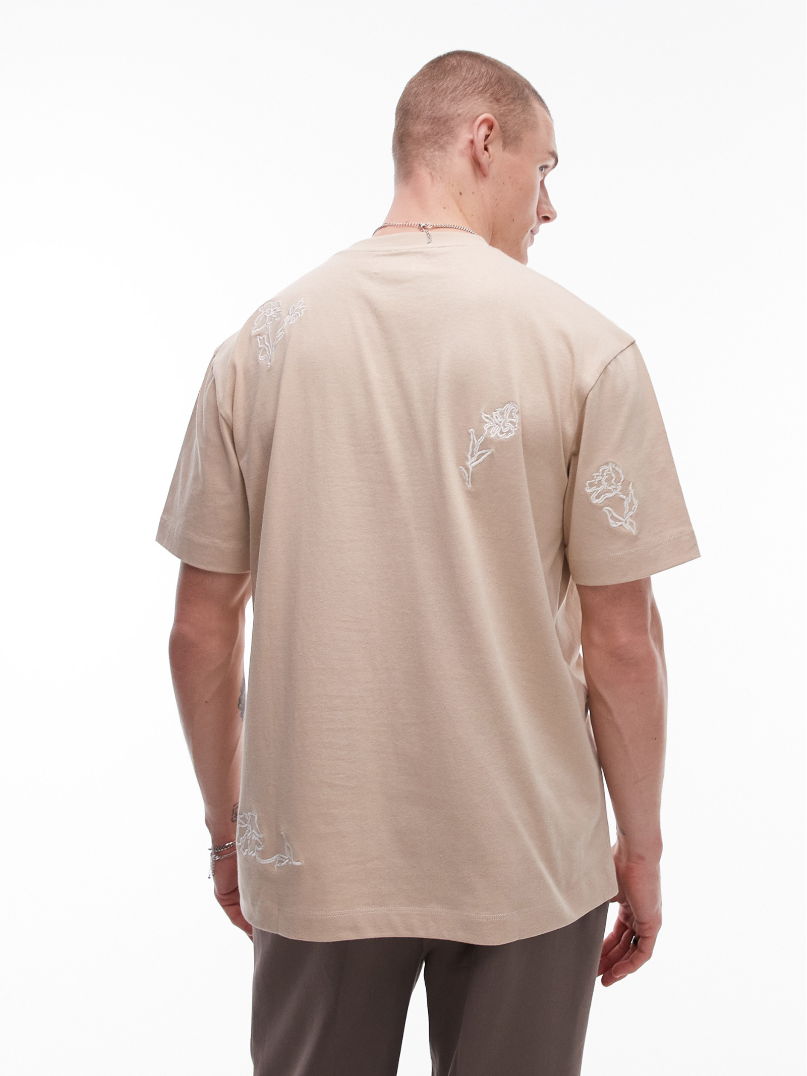 This Oversized Floral Embroidery Shirt from Topman offers a relaxed fit for effortless style. The crew neck and drop shoulders complete its laid-back appeal.