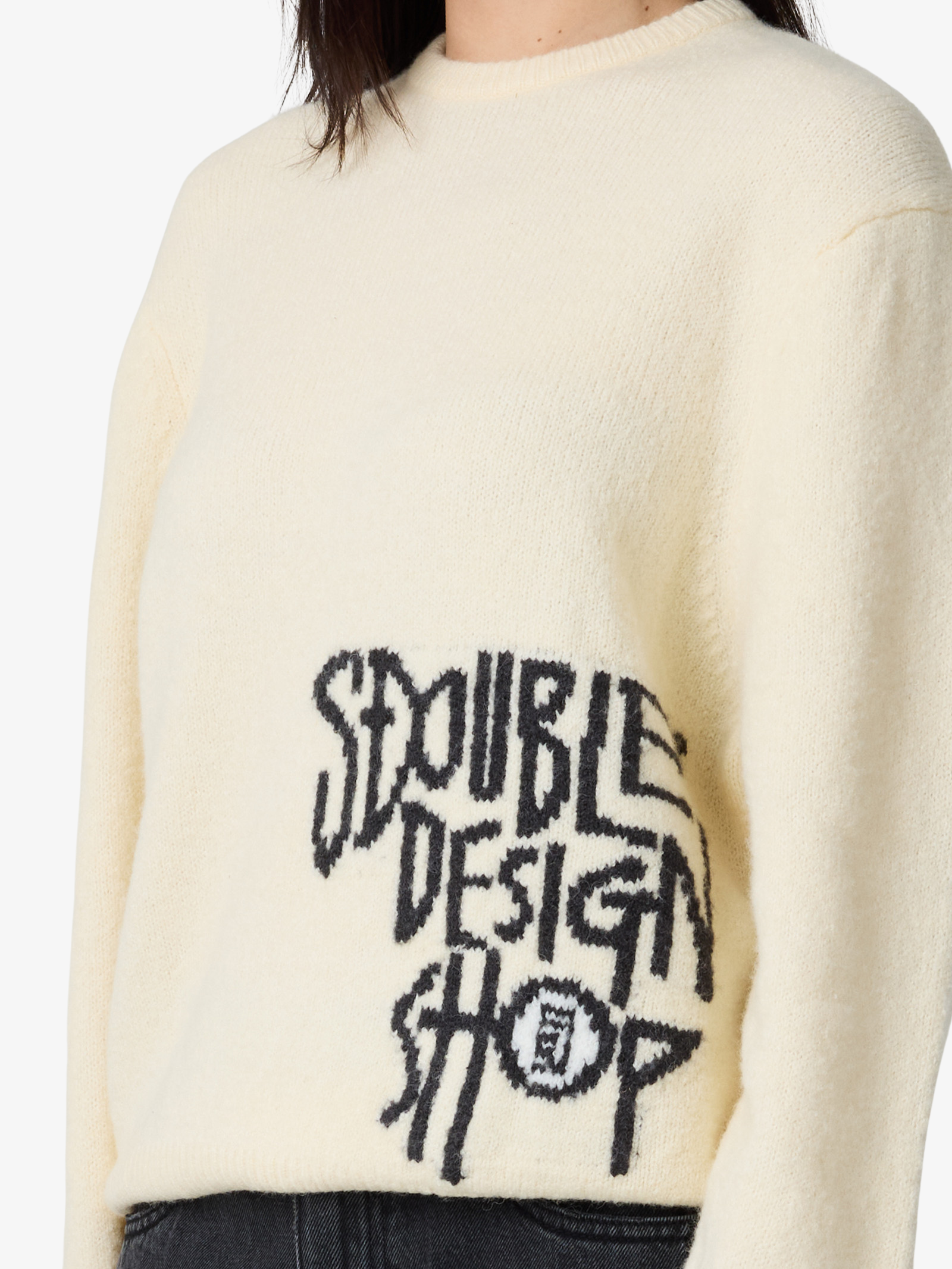 The Placement Knit Sweater in Cream by S-Double is knitted in a soft, mid-weight yarn. This sweater features a classic crew neckline, ribbed trims, and a relaxed fit.