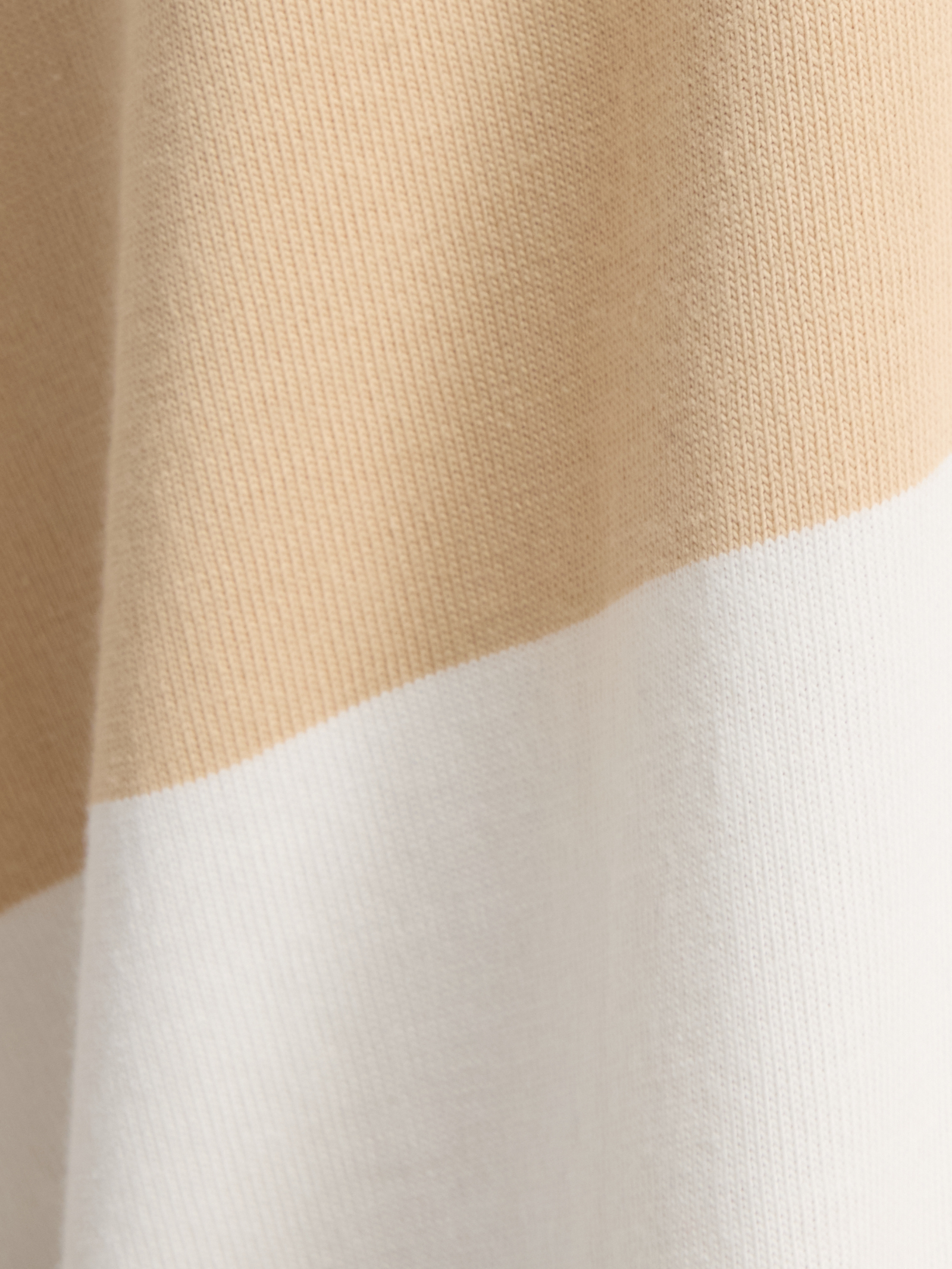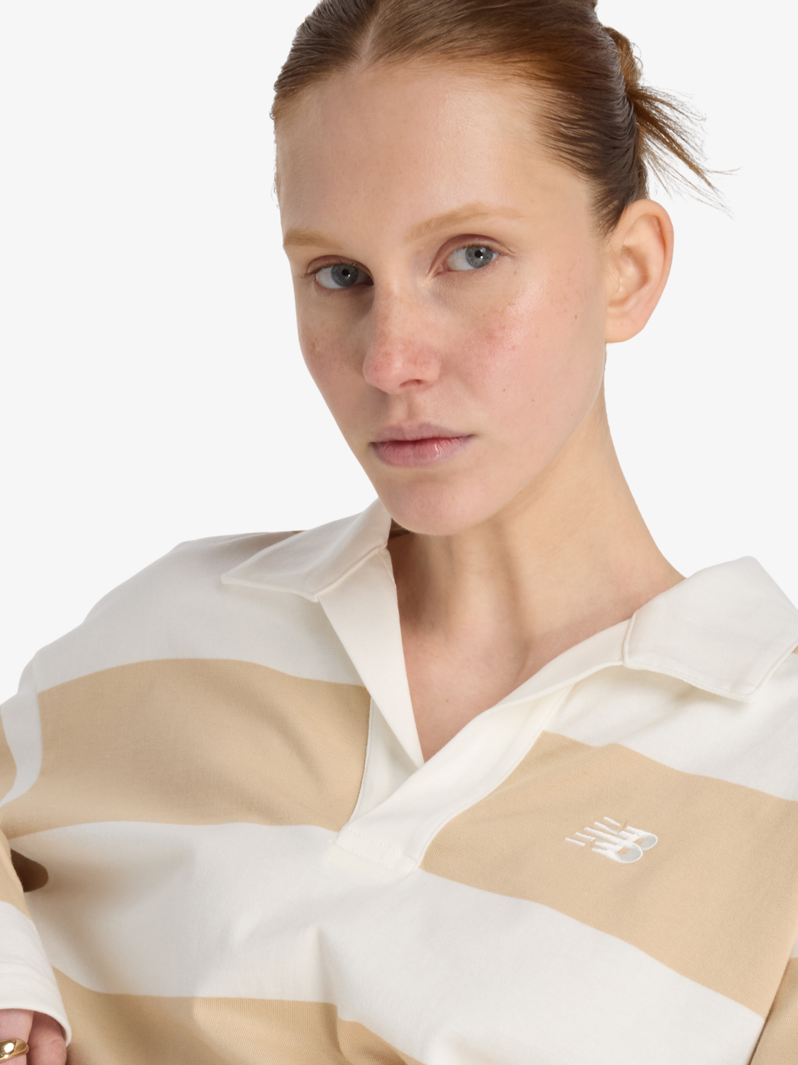 The Rugby Long Sleeve in Desert Clay by New Balance features a wide rugby stripe and classic jersey collar. This long-sleeve shirt offers a relaxed fit.