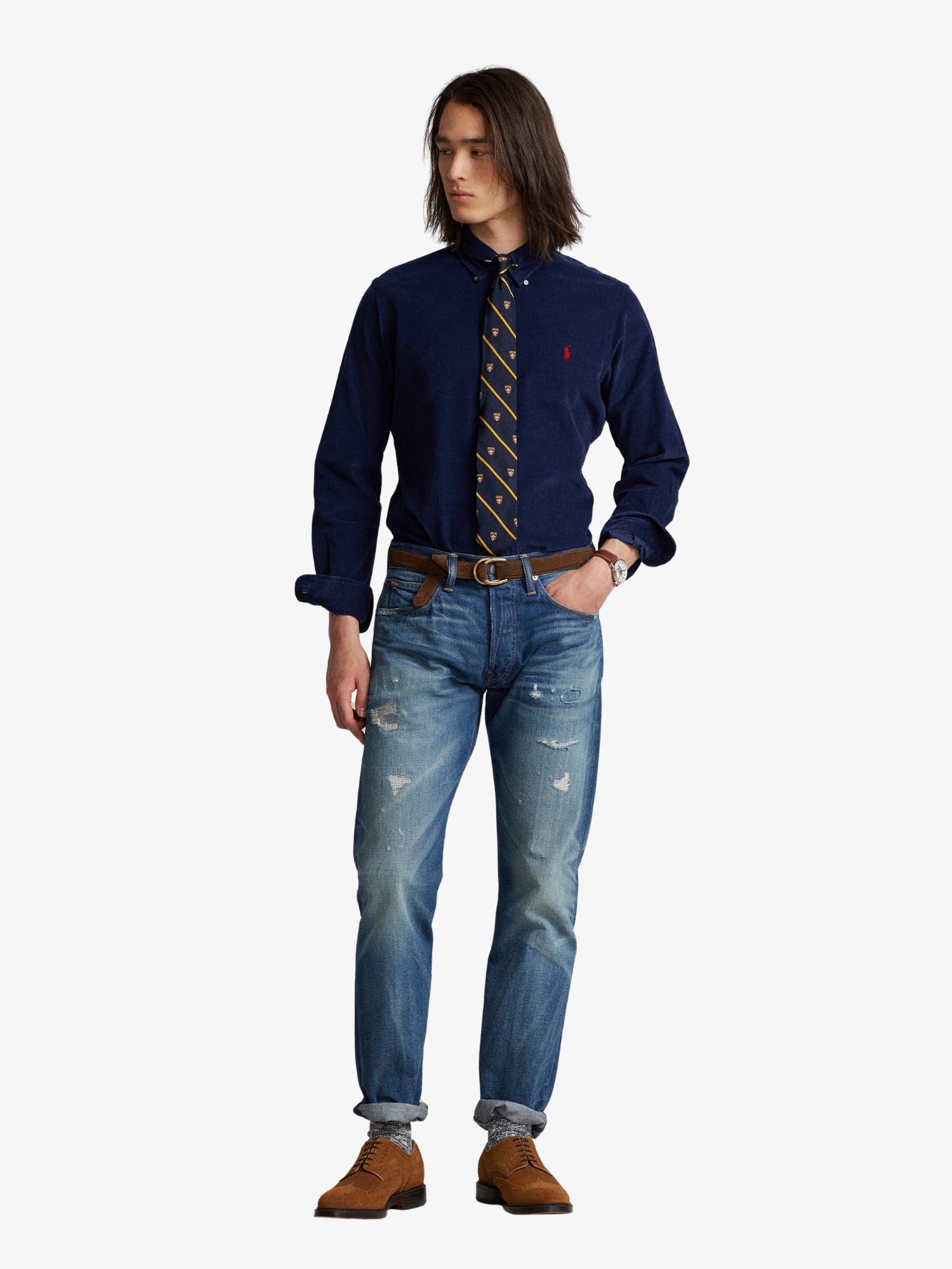 This Slim Fit Corduroy Shirt from Polo Ralph Lauren features a point collar, buttoned barrel cuffs, and the embroidered Pony at the chest. Cut with higher armholes and a closer waist for a tailored silhouette.