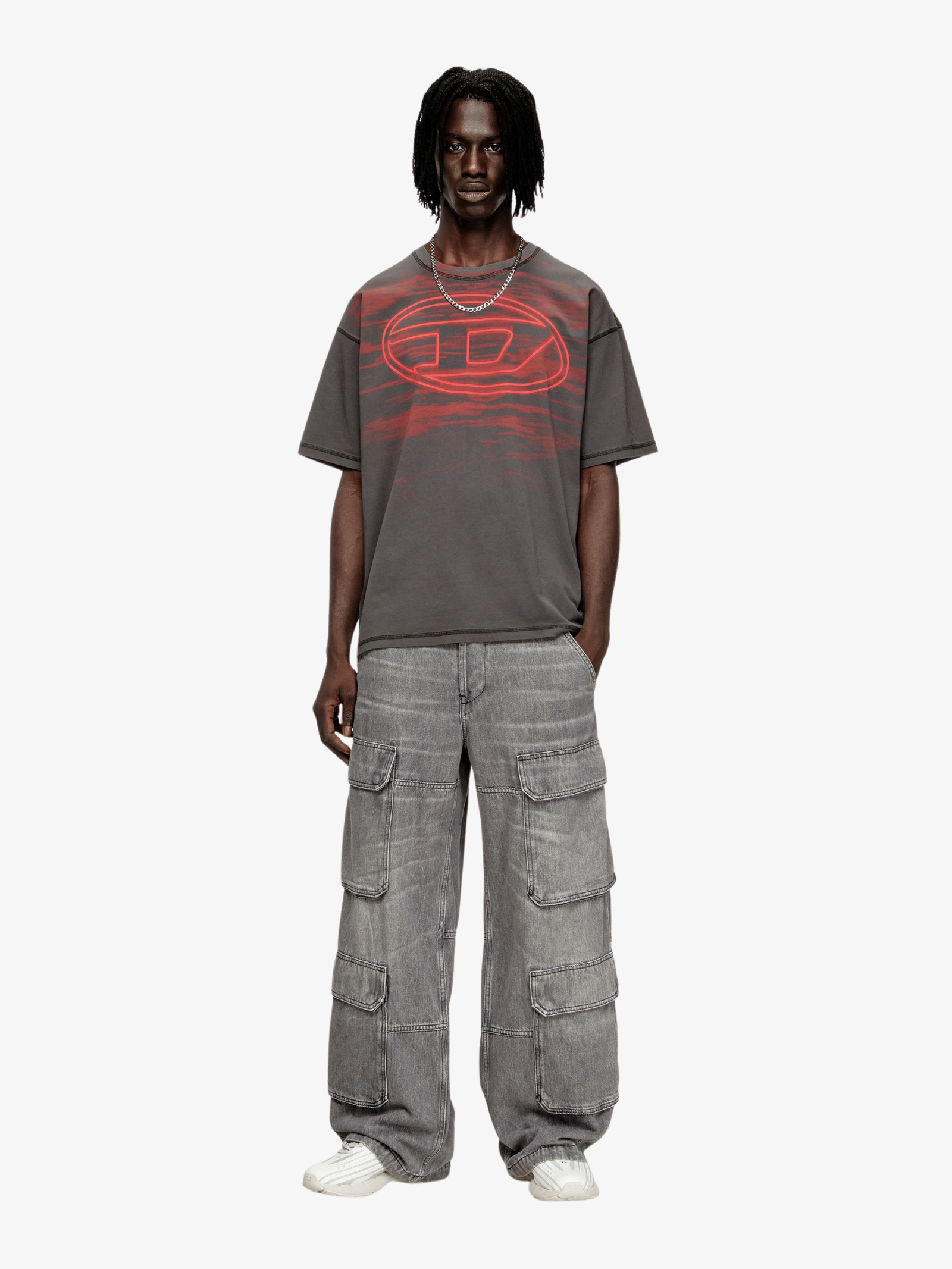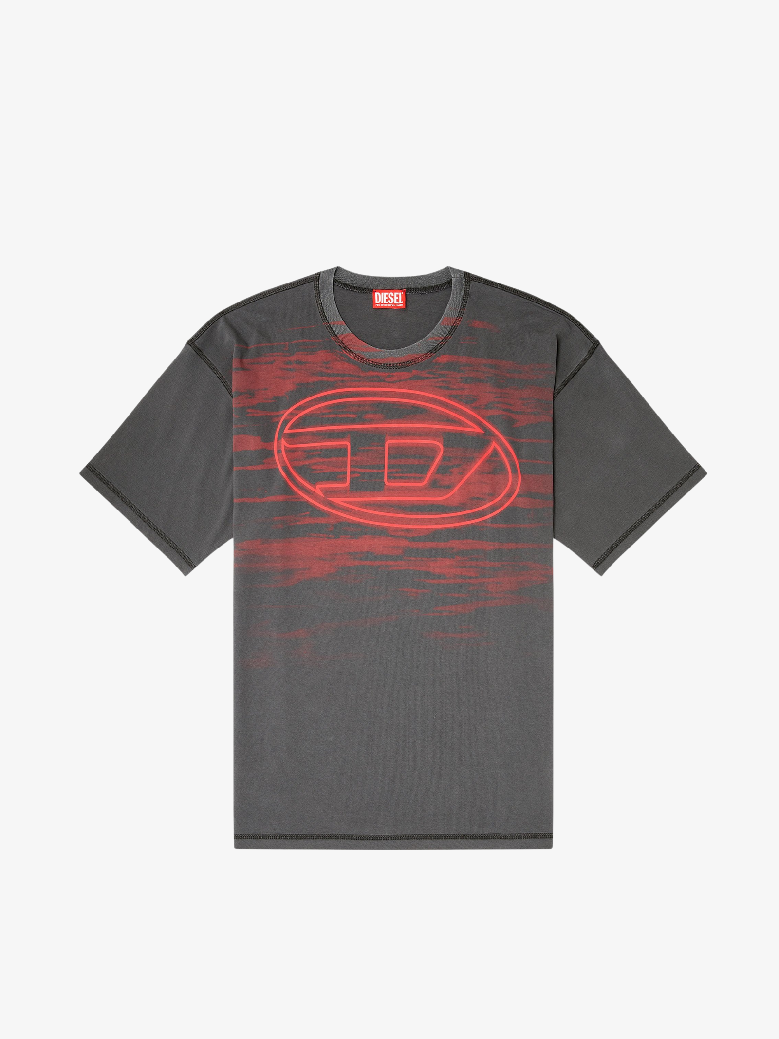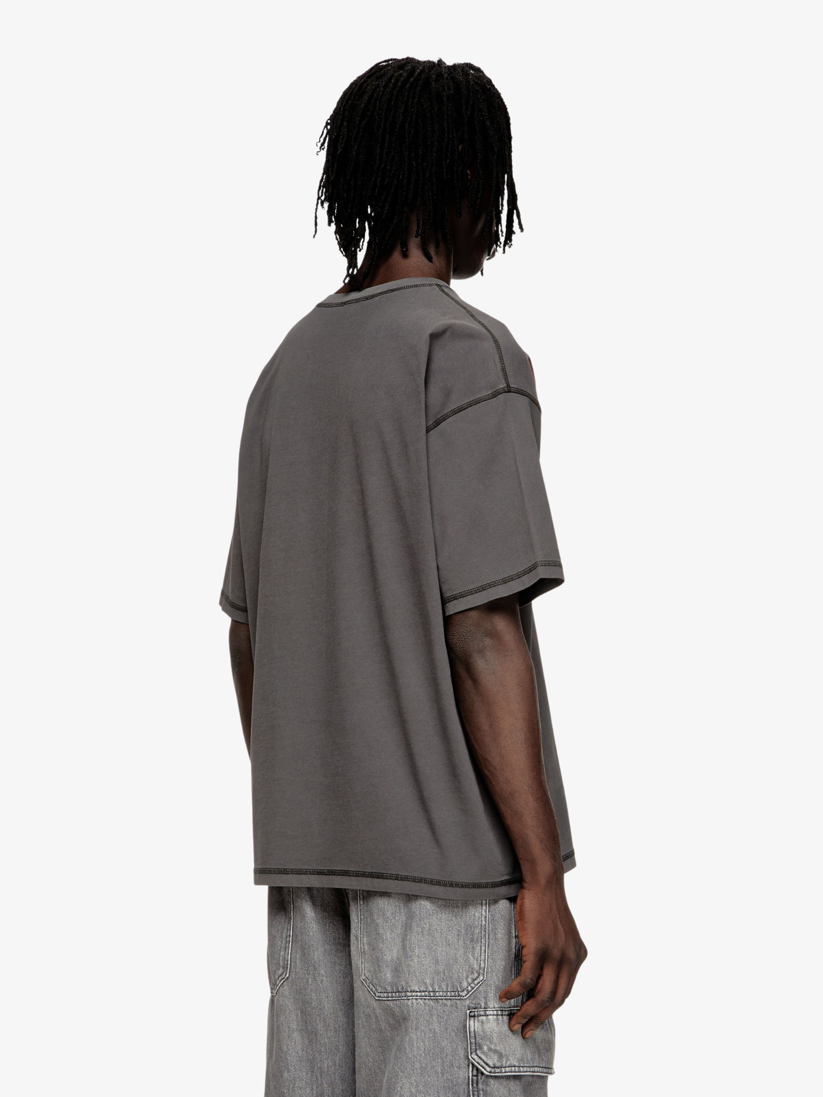 The T-BoxT-T5 in Charcoal by Diesel is crafted from soft cotton with a relaxed silhouette. This tee features a ribbed crew neckline, and a bold Oval D logo print across.