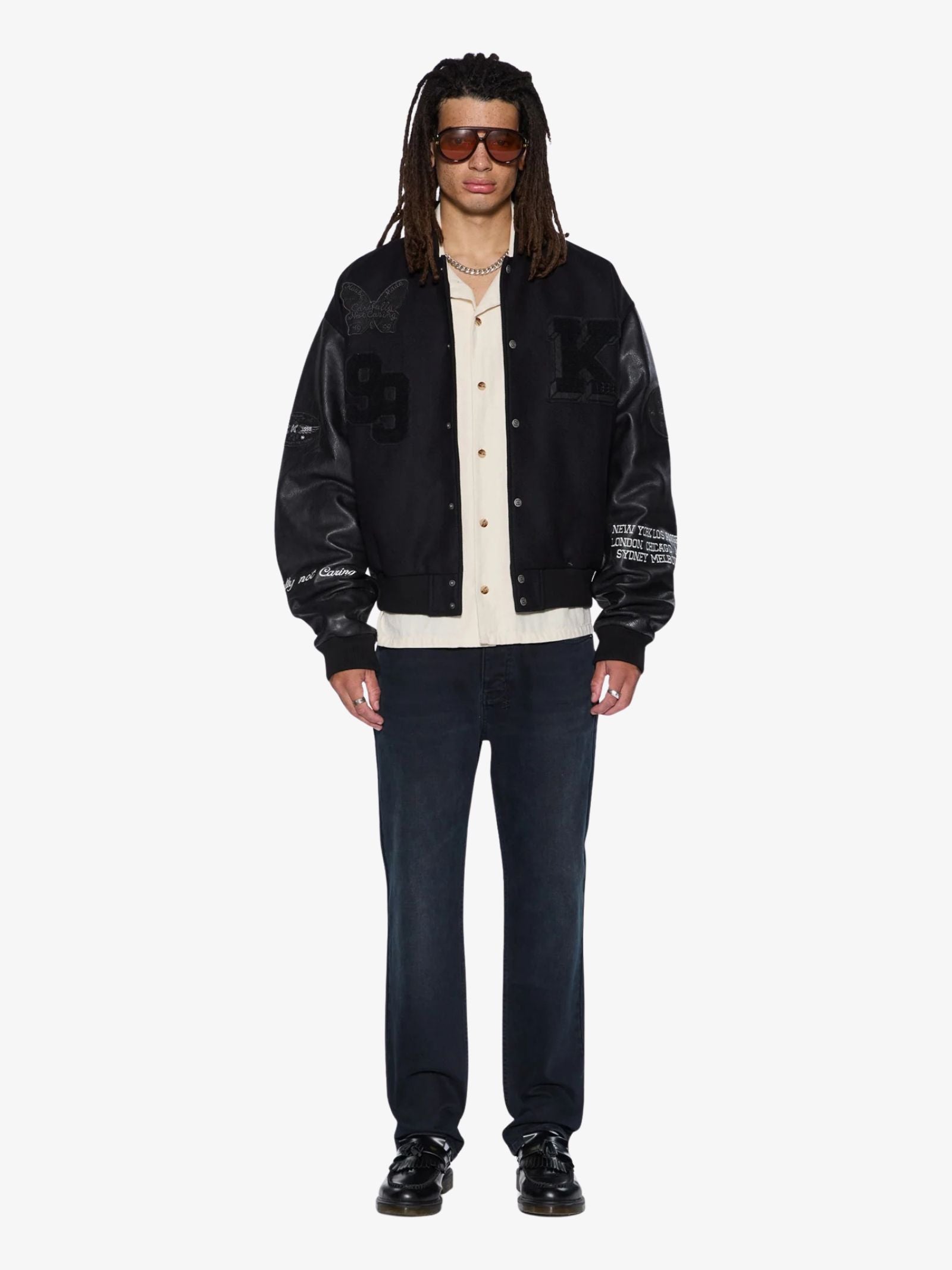The Truckstop Diner Short from Ksubi is an oversized resort shirt made from lightweight cotton with a subtle herringbone stripe. It features front and back graphic prints, signature t-box and 4x4 branding, and Ksubi-branded hardware.