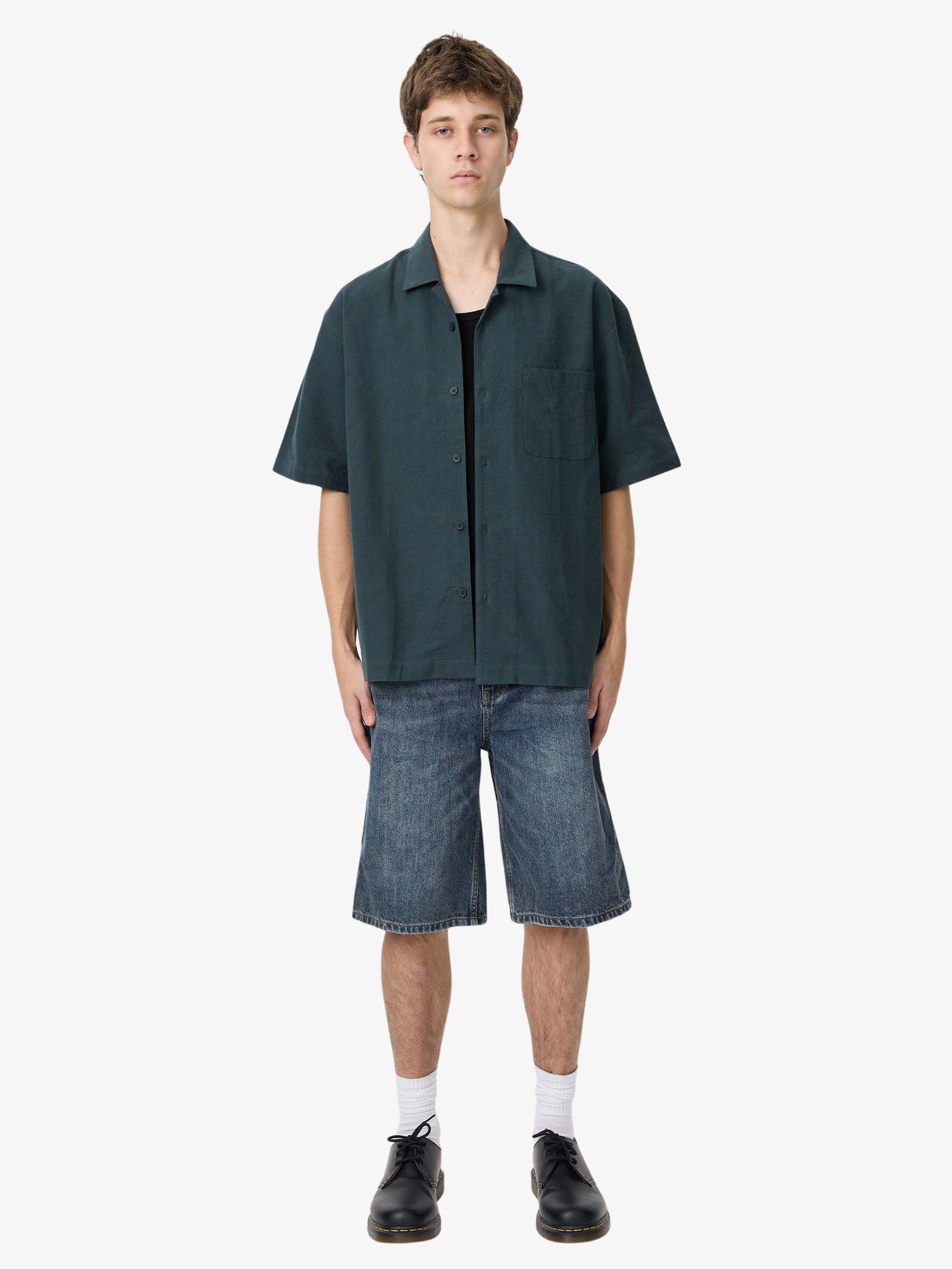 This Whelan Shirt by Article One comes in a loose cut. Built with a button placket, short sleeves, and an open collar with chest pocket.