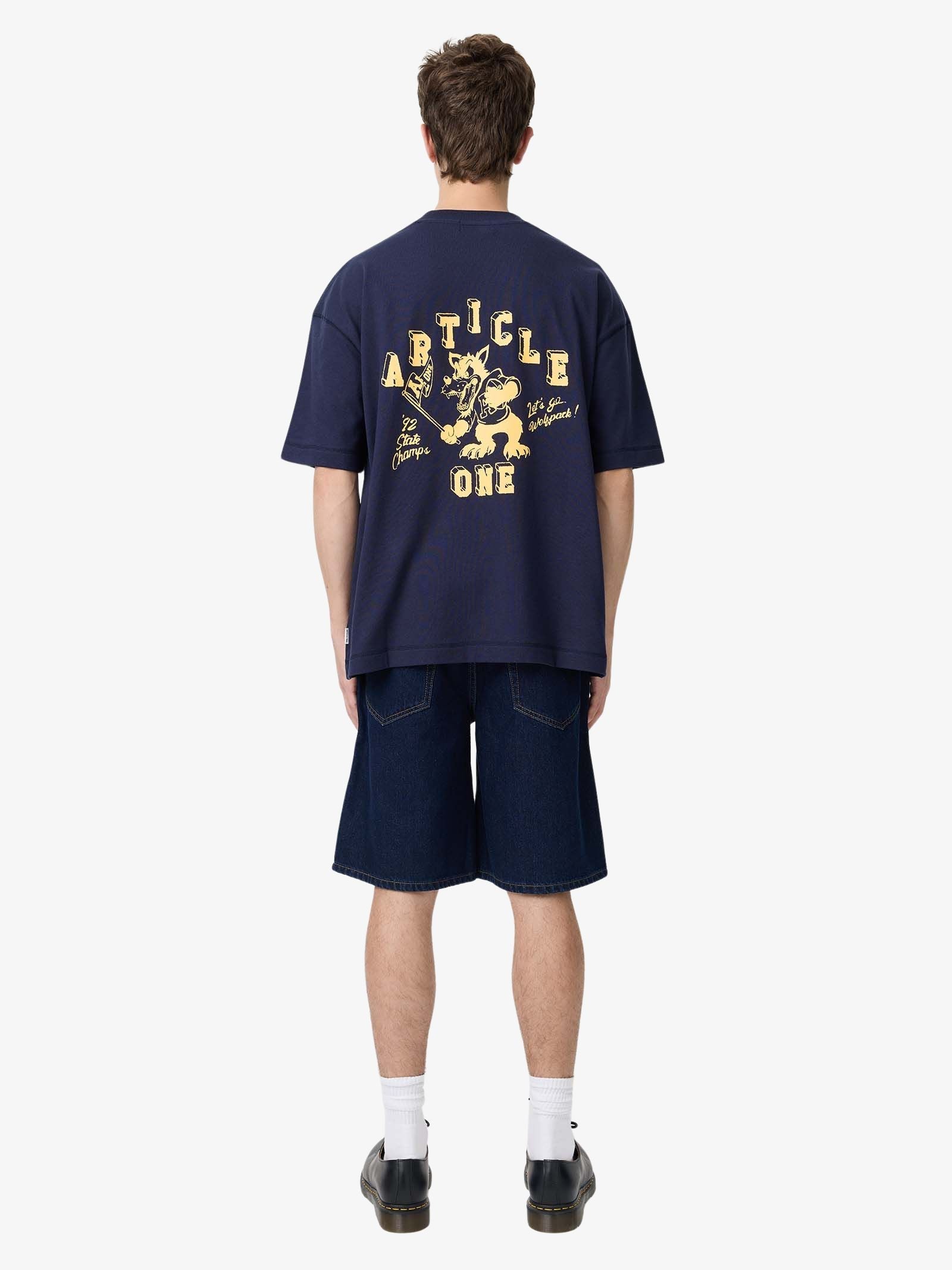 The Wolfpack Tee by Article One is cut from cotton jersey and carries a loose, everyday fit. A small chest print keeps the front minimal, while the back shows bold mascot artwork.