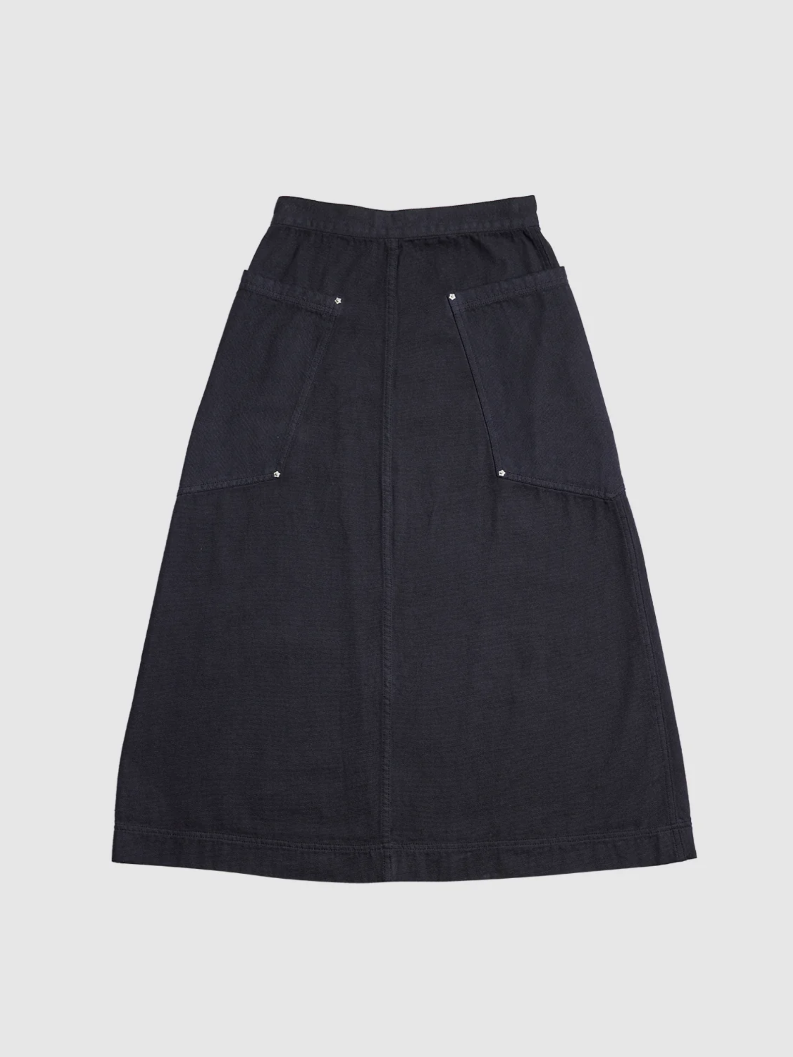 This Wrap Skirt by Larriet is a long-line silhouette cut from heavyweight cotton denim. Designed with oversized patch pockets and star rivet details.