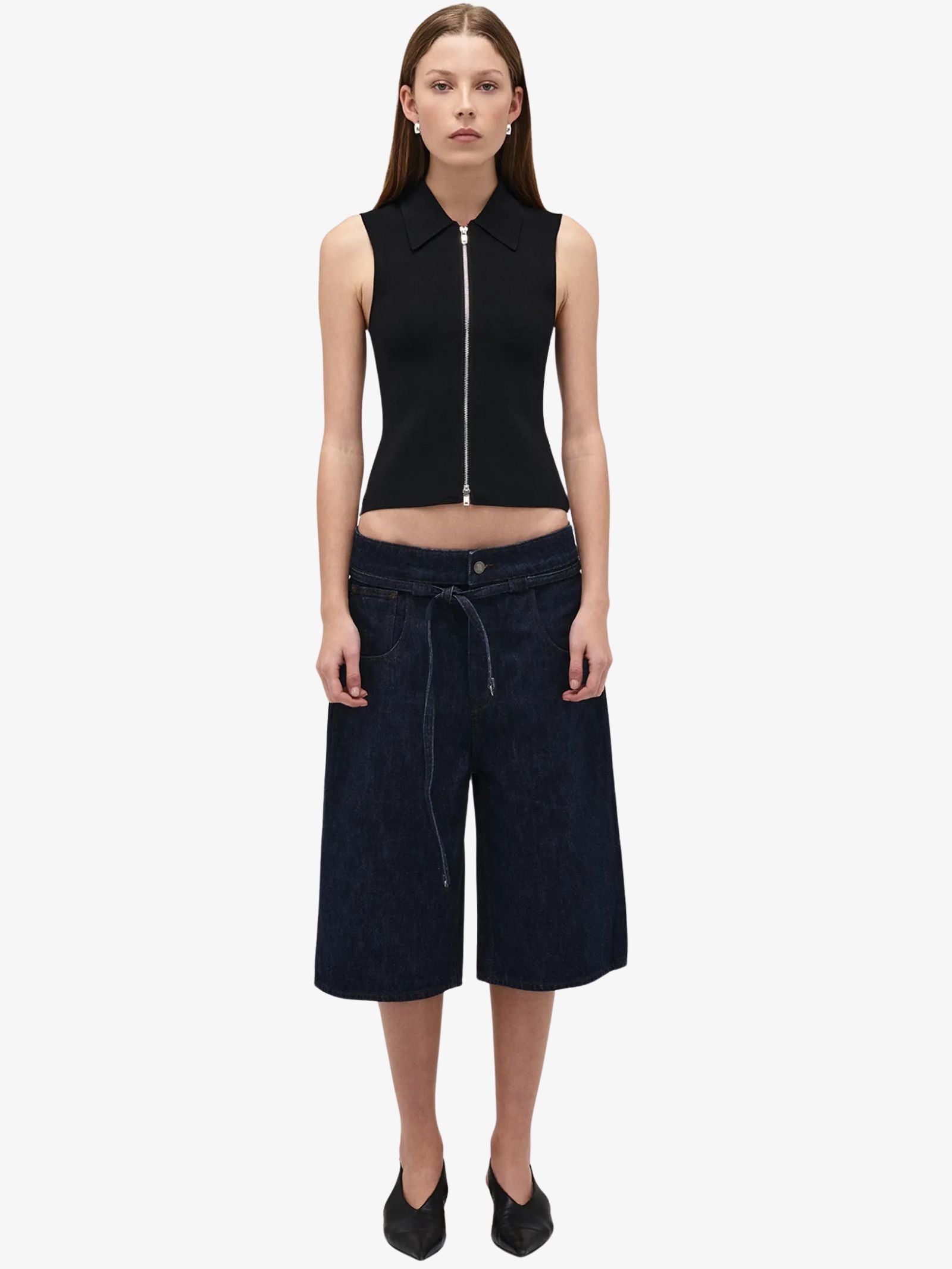 The Yoko Jort by Neuw reimagines the signature baggy silhouette into a long short with a directional edge. Designed with a cinch waist, exaggerated scoop pockets, and premium Candiani denim, it delivers structure and volume in a deep indigo wash.